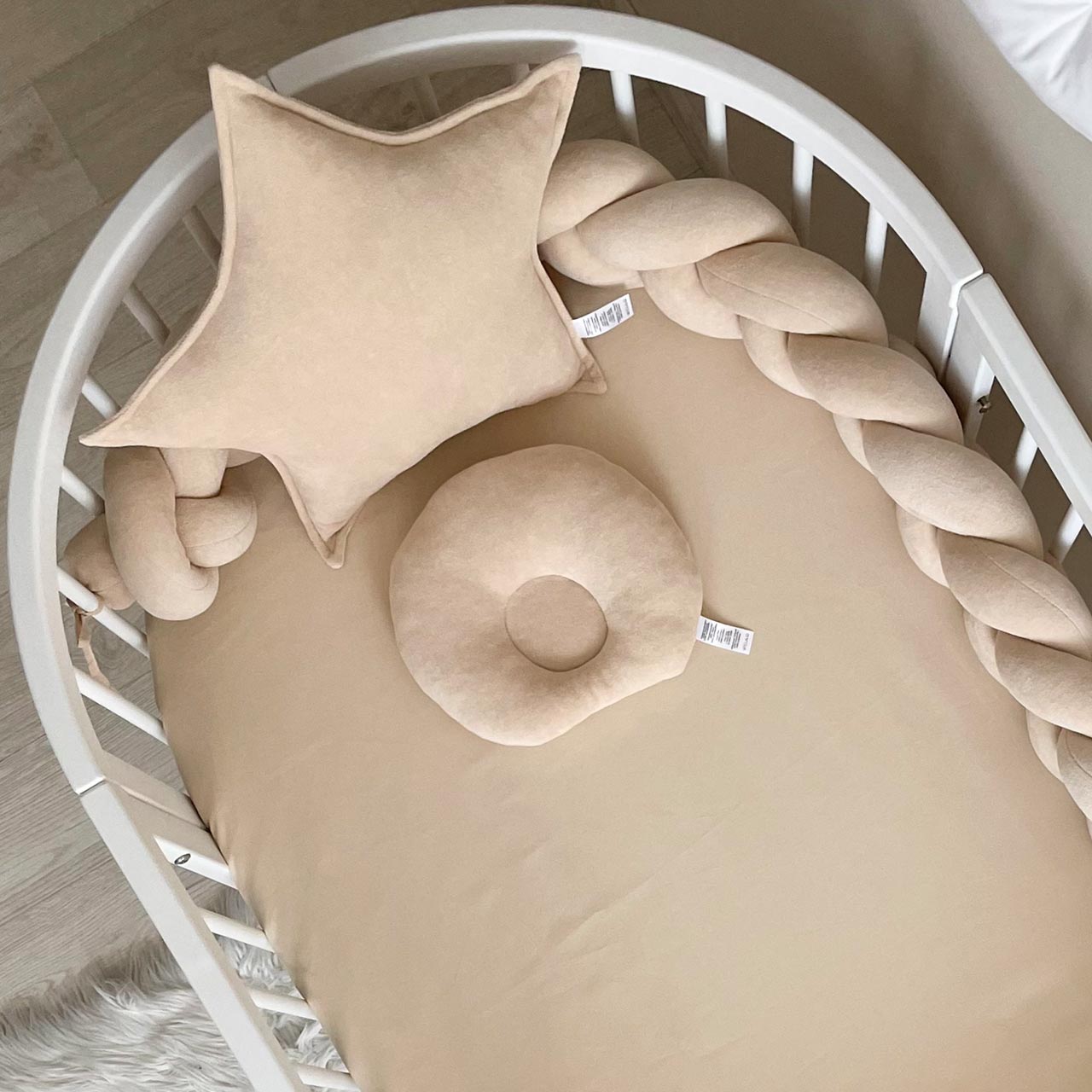 Το βελούδινο διακοσμητικό μαξιλάρι σε σχήμα αστέρι, σε μπεζ χρώμα είναι απόλυτα ασφαλές και φιλικό προς το μωρό. Το ύφασμα διαθέτει πιστοποίηση Oeko-Tex Standard 100, που εγγυάται ότι είναι απαλλαγμένο από επιβλαβείς ουσίες.