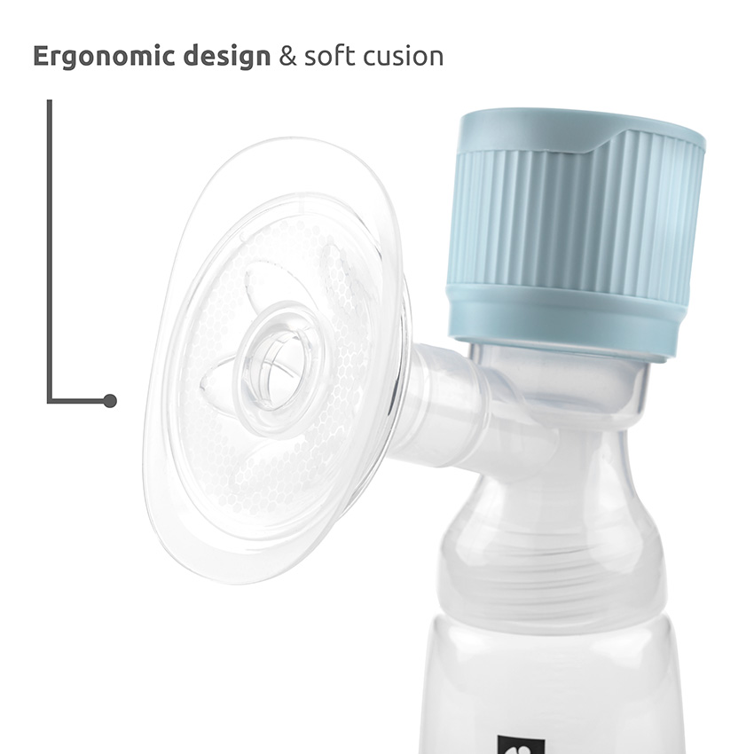 Η εργονομική χοάνη με μαλακό μαξιλαράκι εξασφαλίζει άνετη εφαρμογή, ενώ το δοχείο χωρητικότητας 180 ml καλύπτει τις καθημερινές ανάγκες άντλησης. Συνοδεύεται από USB καλώδιο και τσάντα μεταφοράς, προσφέροντας πρακτικότητα σε κάθε χρήση.