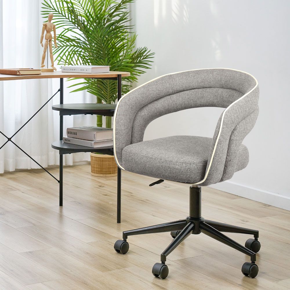 Η καρέκλα γραφείου LA LUNA της Maison συνδυάζει εργονομία, κομψότητα και σύγχρονη αισθητική. Με αναπαυτικό κάθισμα και ύφασμα σε ουδέτερη γκρι απόχρωση, προσφέρει ιδανική υποστήριξη για διάβασμα, δημιουργία ή εργασία – στο σπίτι ή στο γραφείο.