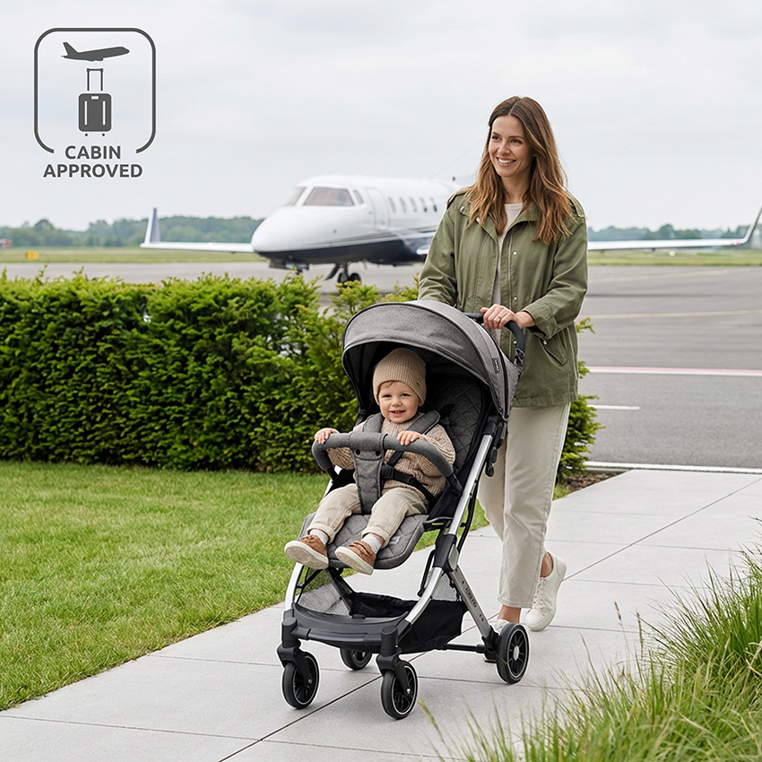 - Ρυθμιζόμενη κουκούλα με αντηλιακή προστασία