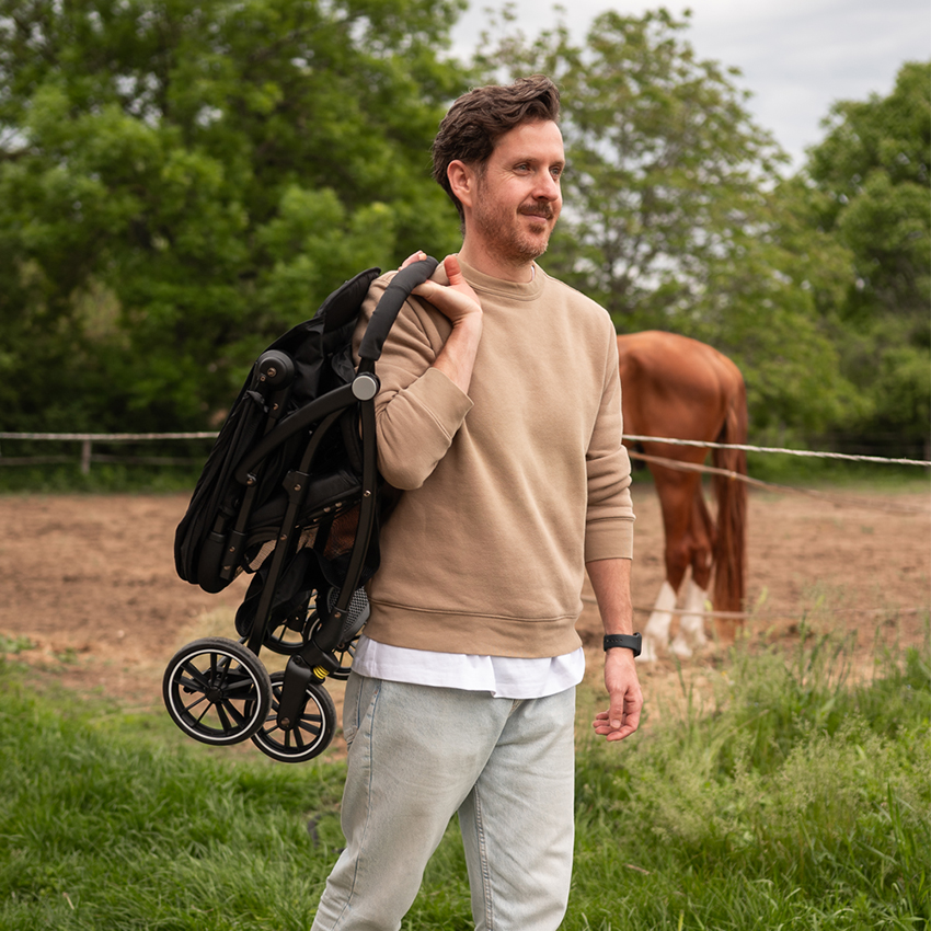 - Ρυθμιζόμενη κουκούλα με αντηλιακή προστασία