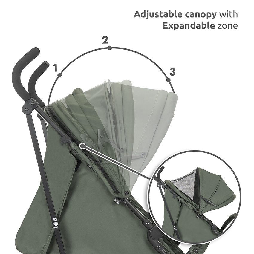 • Ρυθμιζόμενη κουκούλα με επεκτεινόμενη επιφάνεια
