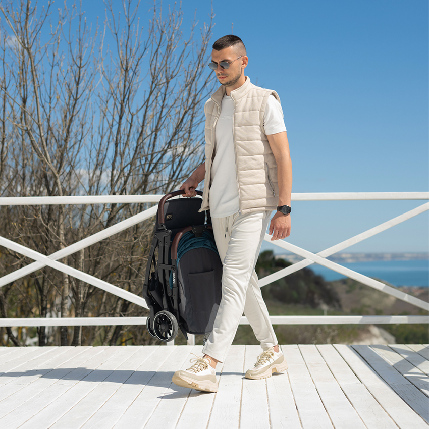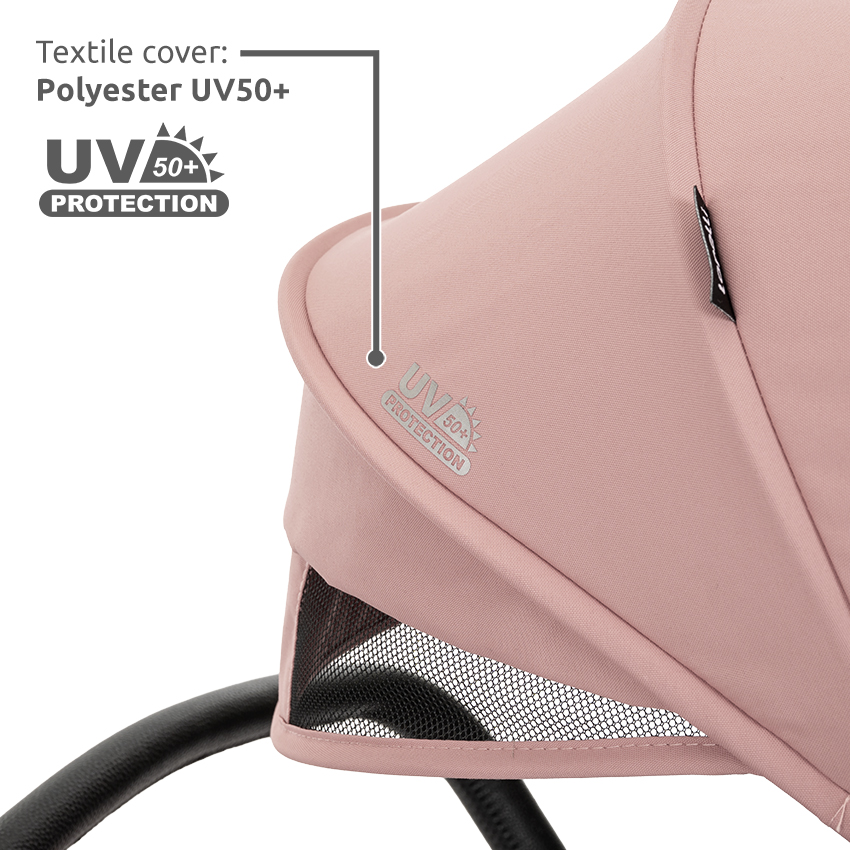 - Ρυθμιζόμενη κουκούλα με αντηλιακή προστασία