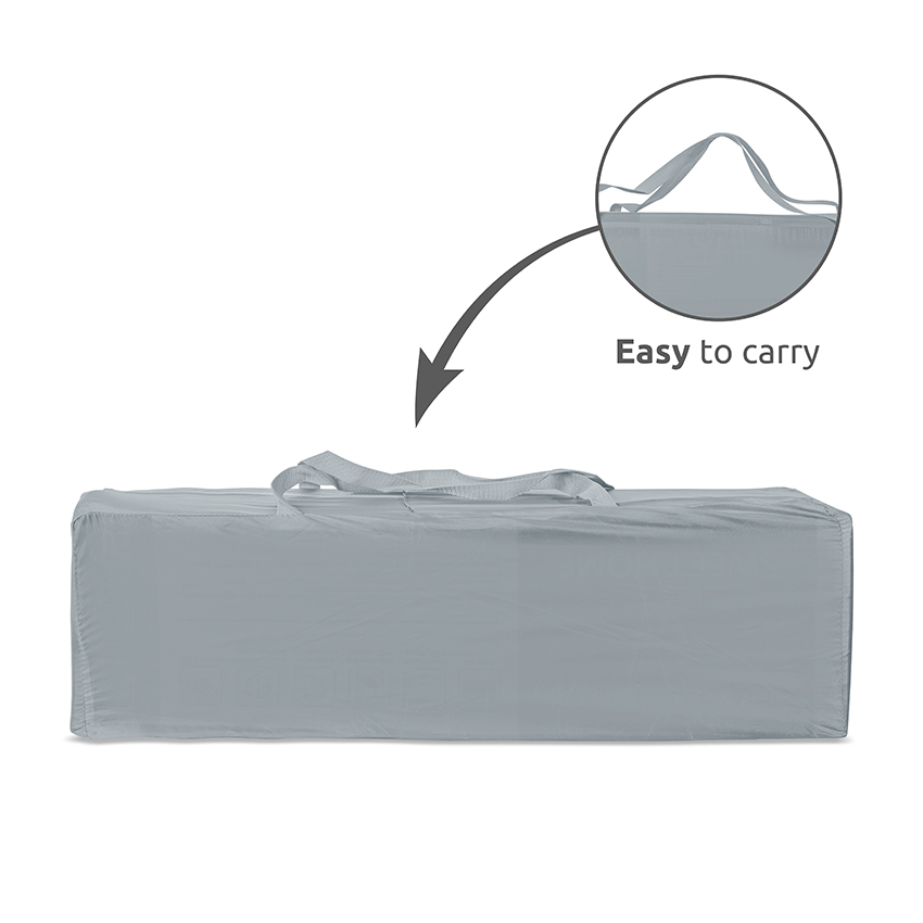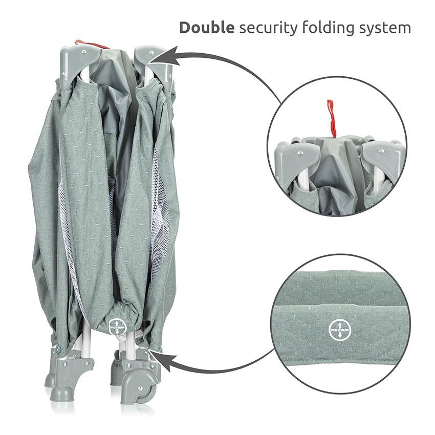Διαθέτει σταθερό σκελετό με σύστημα διπλής ασφάλειας κατά της αναδίπλωσης, ενώ διπλώνει εύκολα σε συμπαγές μέγεθος για αποθήκευση και μεταφορά. Περιλαμβάνει στρωματάκι και πρακτική τσάντα μεταφοράς, καθιστώντας το ιδανικό για εξόδους και ταξίδια.