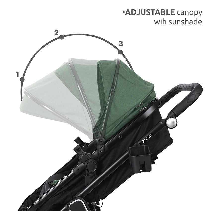 • Ρυθμιζόμενο & επεκτεινόμενο σκίαστρο με άνοιγμα.