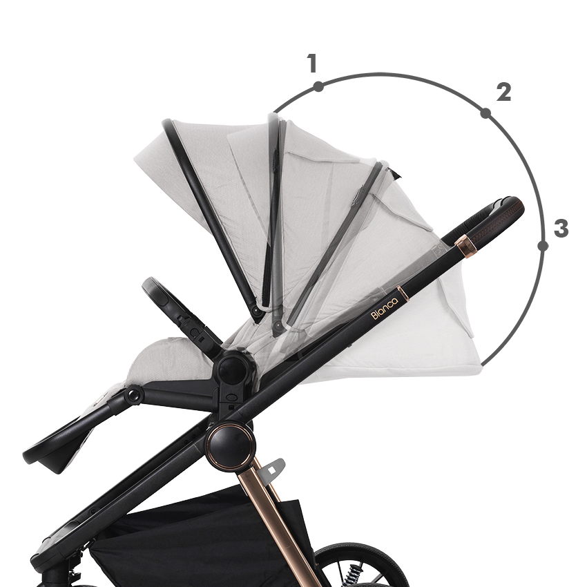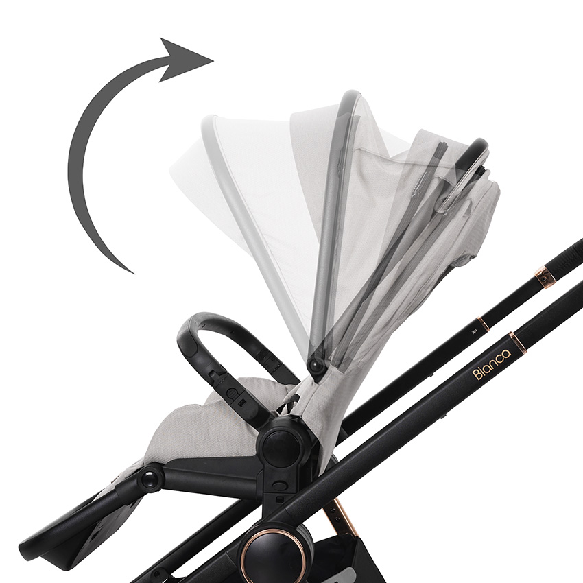 • Ρυθμιζόμενο & επεκτεινόμενο σκίαστρο με άνοιγμα.