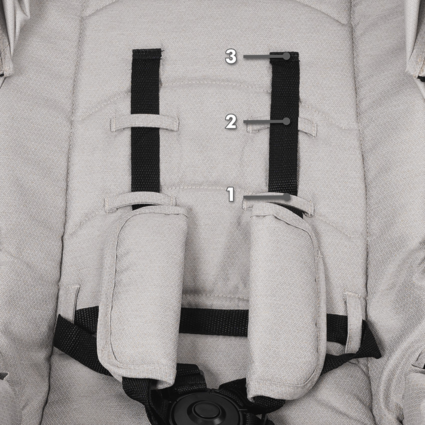 • Ζώνη ασφαλείας ύψους 3 σημείων ρυθμιζόμενη ως προς το ύψος και το βάρος του παιδιού που μεγαλώνει.