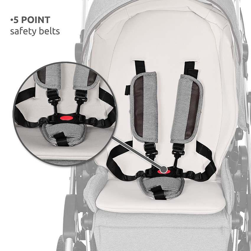 - Ζώνη ασφαλείας ύψους 5 σημείων ρυθμιζόμενη ως προς το ύψος και το βάρος του παιδιού που μεγαλώνει.