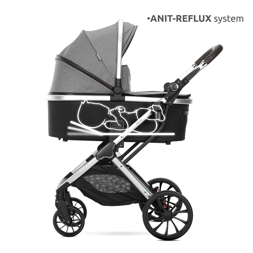 - Διαθέτει σύστημα anti-reflux στην καλαθούνα, που επιτρέπει την ελαφριά ανύψωση της πλάτης για μεγαλύτερη άνεση του μωρού και μείωση της γαστροοισοφαγικής παλινδρόμησης.