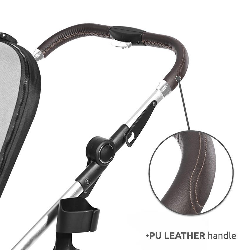 - Ρυθμιζόμενη λαβή καροτσιού από δέρμα PU.