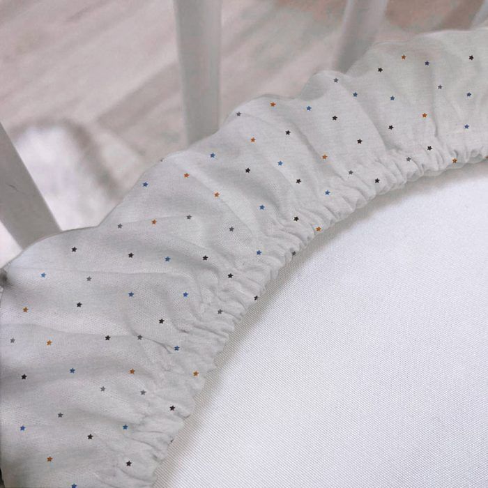 Προσφέρετε στο μωρό σας άνετο και υγιεινό ύπνο με το μικρό σεντόνι “Αστεράκια”, ειδικά σχεδιασμένο για τη κούνια Smart Bed 9 in 1. Φτιαγμένο από 100% βαμβάκι με λάστιχο παραμετρικά για εύκολη και σταθερή εφαρμογή στο στρώμα.
