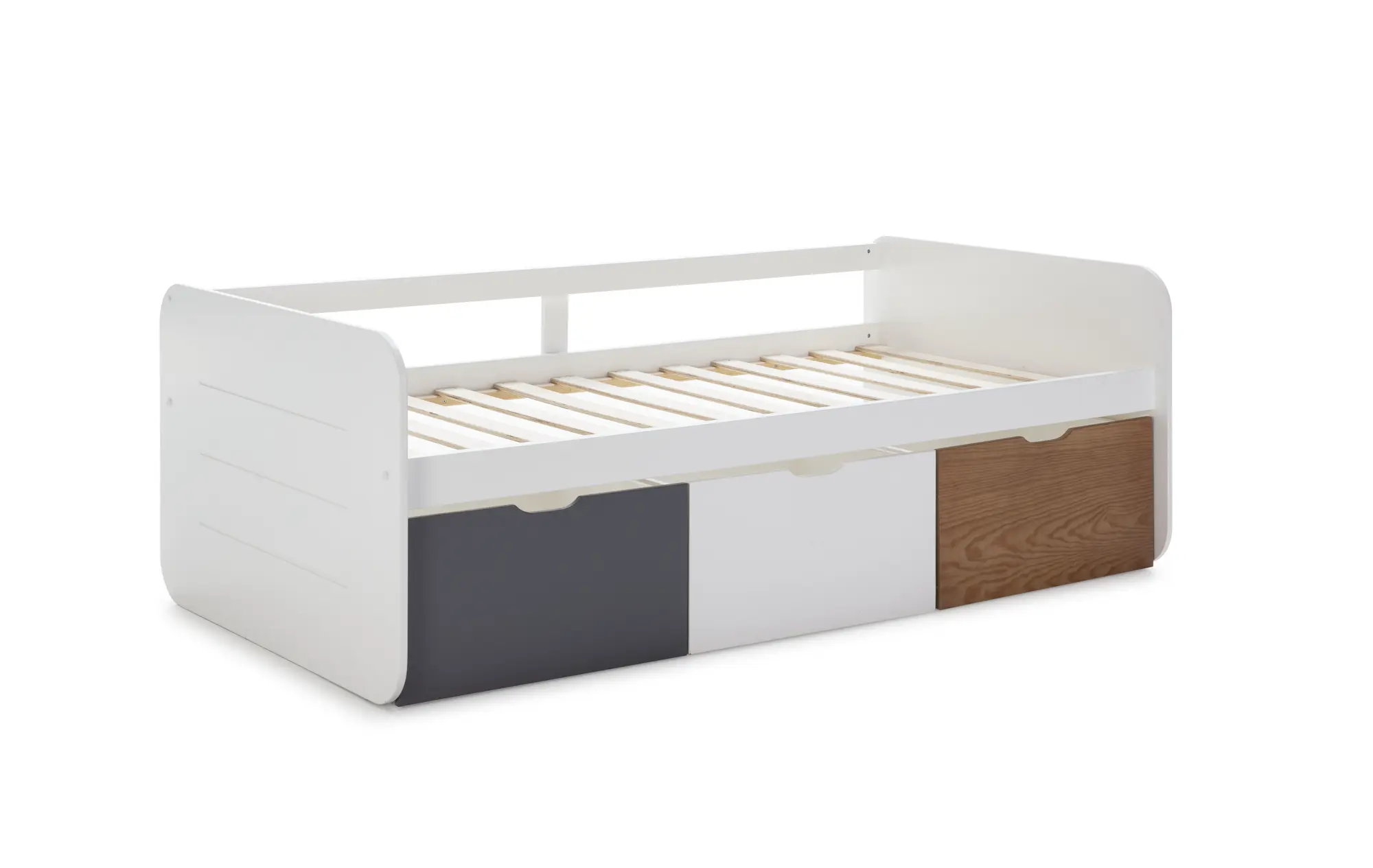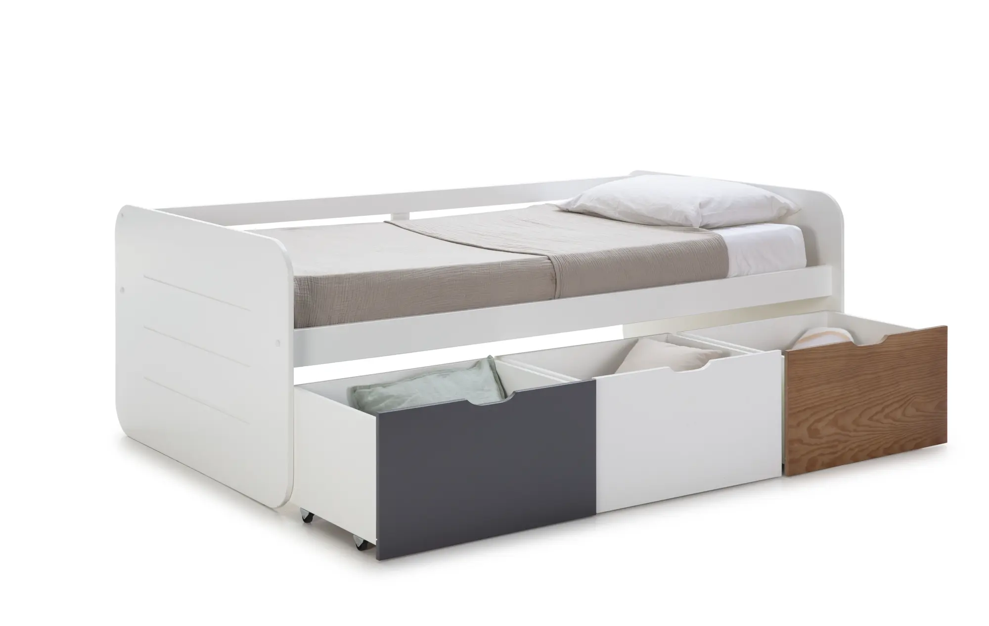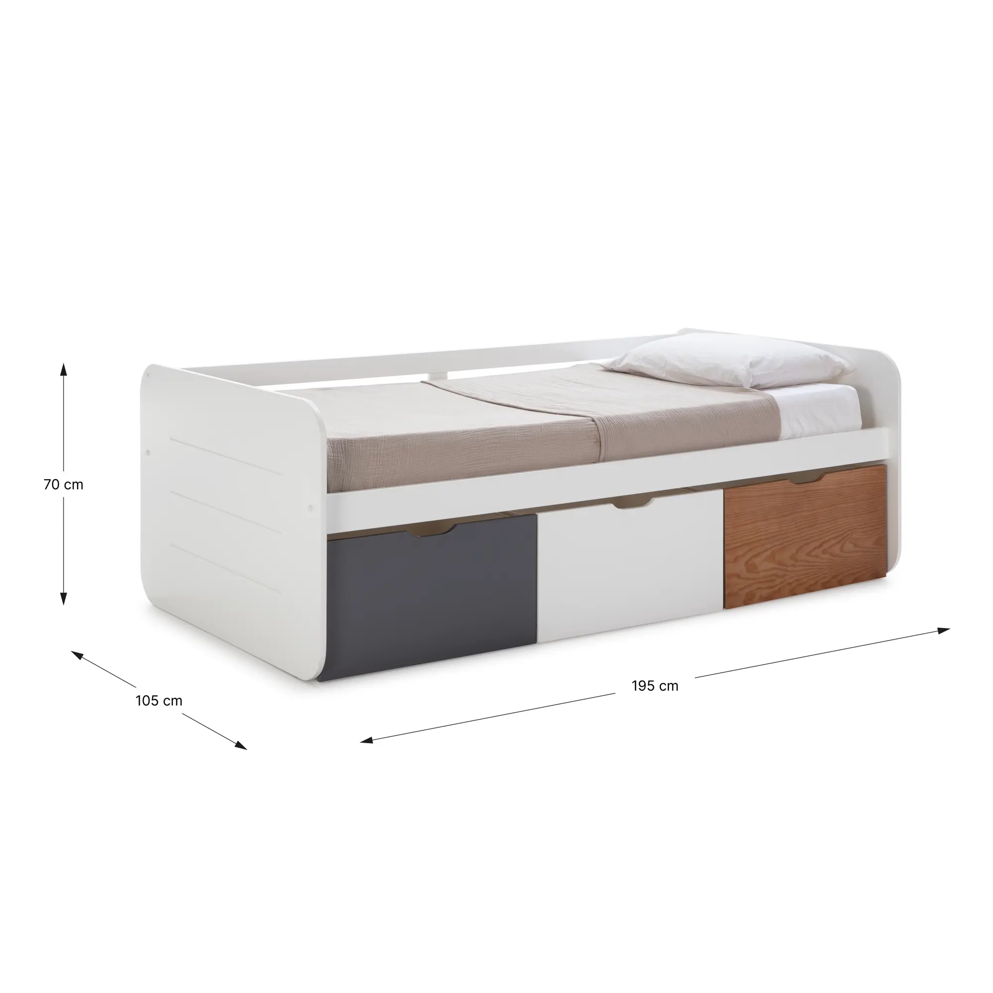 Το παιδικό κρεβάτι “Redona” είναι η ιδανική επιλογή για παιδικό η εφηβικό κρεβάτι. Αποτελείται από 3 αποθηκευτικά συρτάρια κάτω από το κρεβάτι, ιδανικά για λινά, παιχνίδια ή άλλα αντικείμενα.