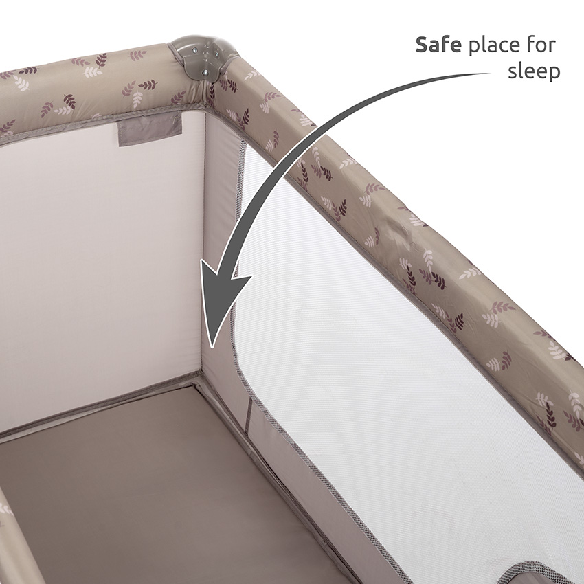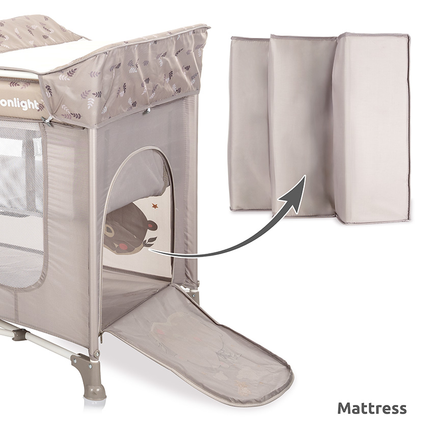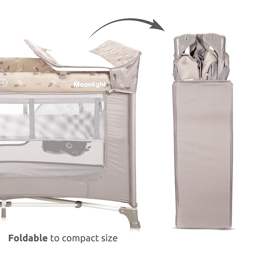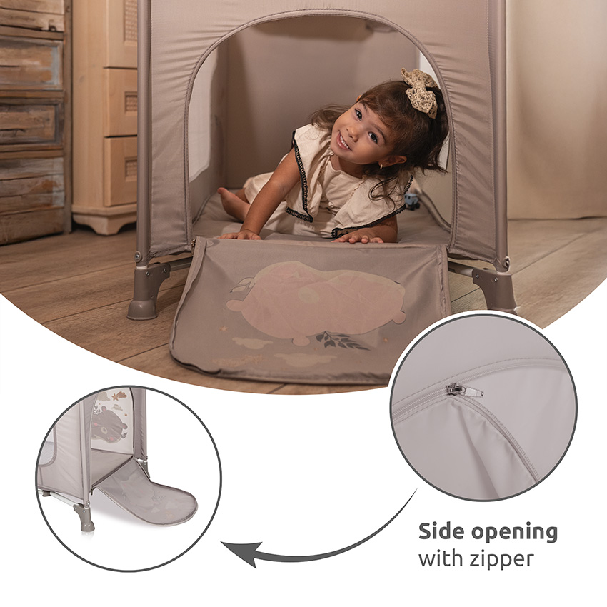 Το δεύτερο επίπεδο με φερμουάρ επιτρέπει εύκολη πρόσβαση στο μωρό, ενώ η ενσωματωμένη αλλαξιέρα διευκολύνει την καθημερινή αλλαγή. Τα πλαϊνά με δίχτυ εξασφαλίζουν σωστό αερισμό και ορατότητα, δημιουργώντας ένα ασφαλές περιβάλλον για ξεκούραση και παιχνίδι.