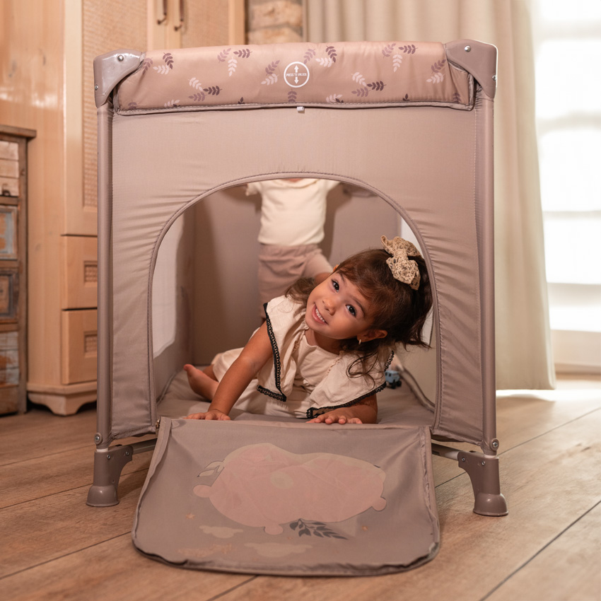Τα πλαϊνά με δίχτυ εξασφαλίζουν άριστο αερισμό και επιτρέπουν στους γονείς να έχουν οπτική επαφή με το παιδί ανά πάσα στιγμή. Το πλευρικό άνοιγμα με φερμουάρ προσφέρει εύκολη πρόσβαση, ενώ ενισχύει τη χρηστικότητα καθώς το παιδί μεγαλώνει.