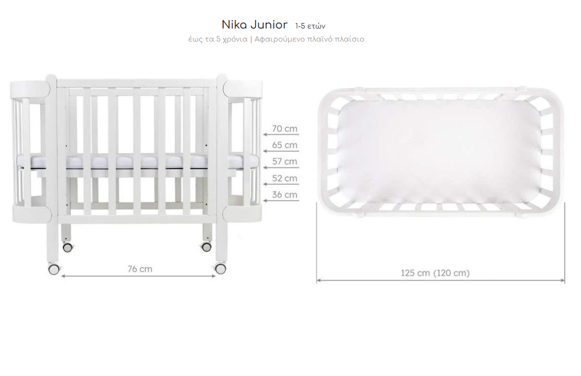 - Βρεφική κούνια με πλευρική ανοιχτή πρόσβαση.