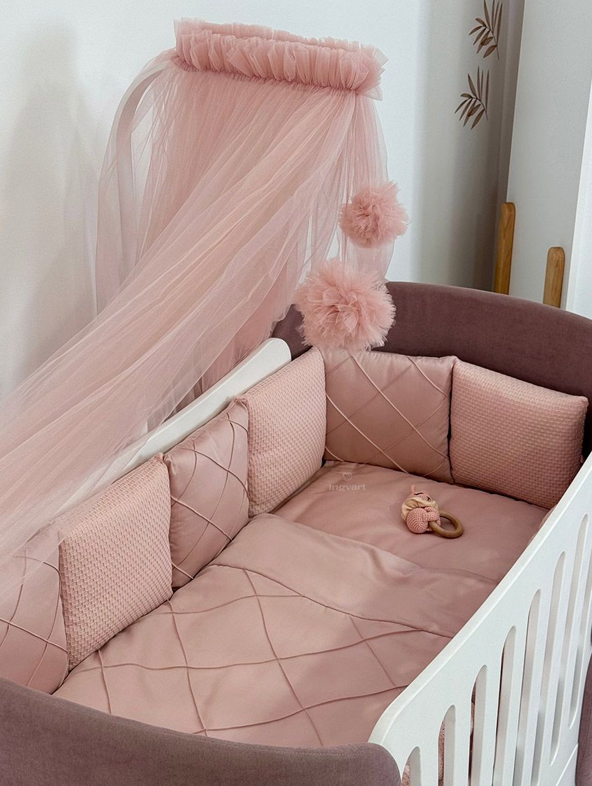 Το σετ περιλαμβάνει: πάντα μαξιλάρι, πάντα πλεξούδα, μαξιλάρι, μαξιλαροθήκη, πάπλωμα, παπλωματοθήκη, σεντόνι.
