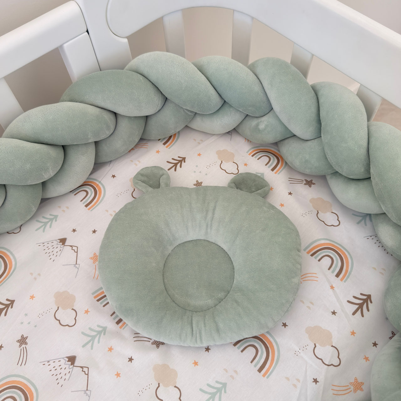 Βρεφικό Ανατομικό Βελούδινο Μαξιλάρι Ύπνου – Green ears